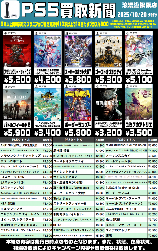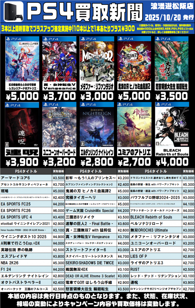 PS4&PS5ソフトの買取新聞を更新しました🎮