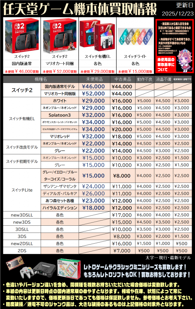 ニンテンドースイッチ2本体の買取価格を更新しました🎮